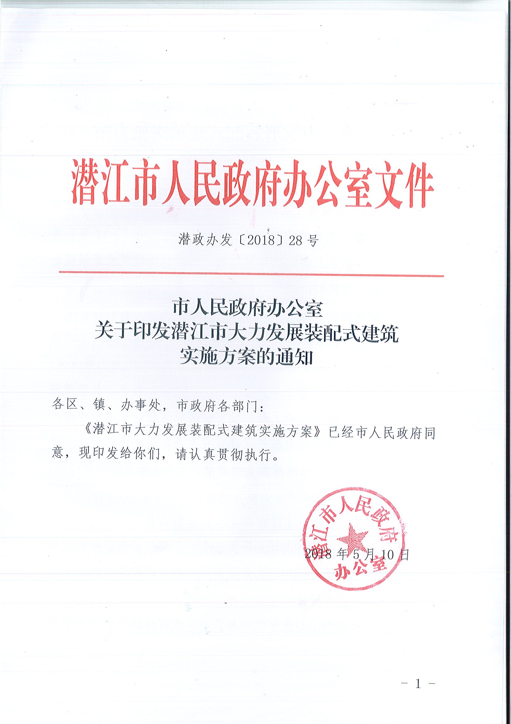 關于印發潛江市大力發展裝配式建筑實施方案的通知